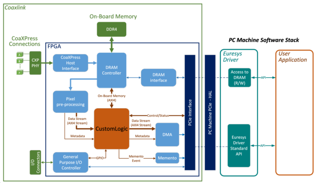 為了解決大容量數(shù)據(jù)的處理問題,比利時(shí)的采集卡廠商Euresys推出了帶有CustomLogic功能的幾款圖像采集卡。